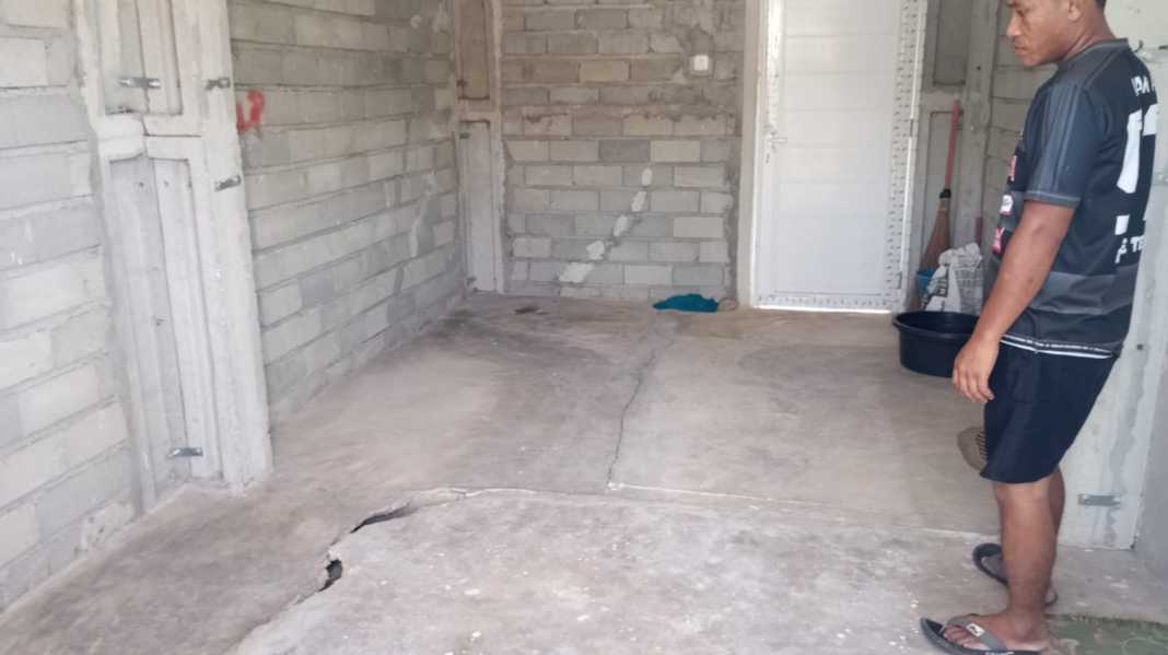 Lantai Salah Satu Huntap Tondo II Amblas, Bagian Tengah Berlubang dan Terbelah