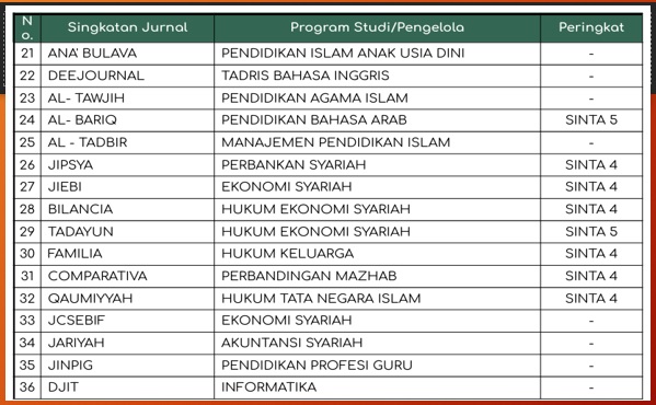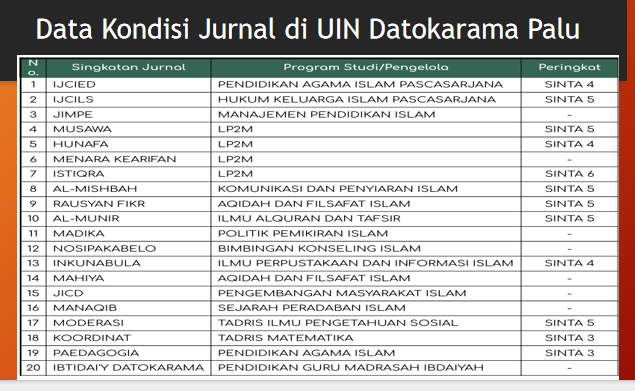 Data Kondisi Jurnal di UIN Datokarama Palu :