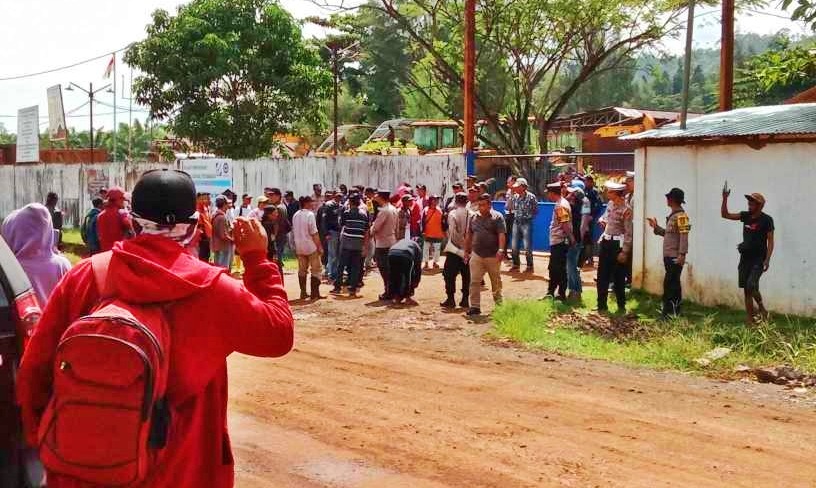 TUNTUT GANTI RUGI : Aksi demo warga menuntut ganti rugi lahan ulayat adat Korowulo, Korosule dan Korousu di lokasi perusahaan, Kamis (16/1/2025).(FOTO : IST)