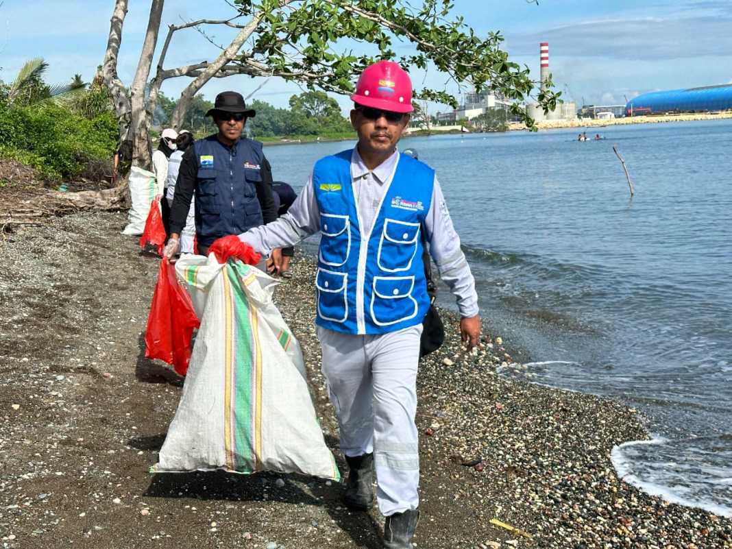 JALANKAN PROGRAM CSR : Pihak PT BTIIG saat membantu membersihkan tepi pantai di Morowali, beberapa waktu lalu.(IST)