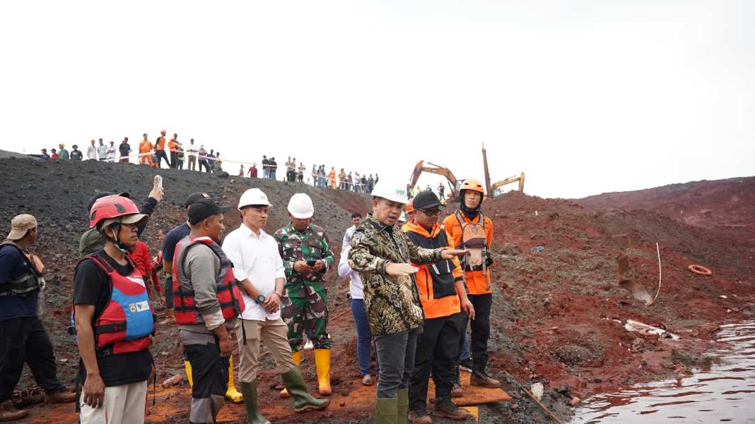 TINJAU : Bupati Morowali Iksan B Abdul Rauf saat mengunjungi lokasi longsor di kawasan IMIP, Minggu (30/3/2025).(Foto:IMIP)