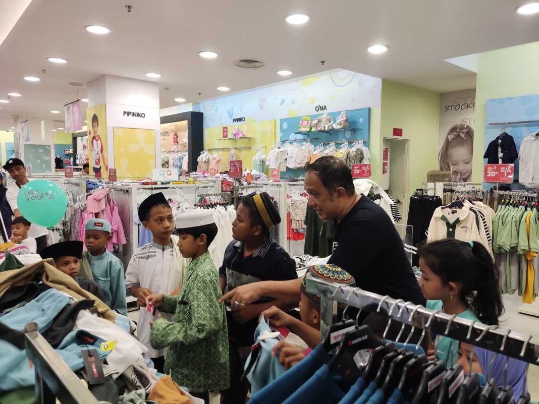 BERBAGI KEBERKAHAN : Keseruan anak yatim piatu saat diajak berbelanja bersama manajemen Palu Grand Mall, Minggu (23/3).(Foto: IST)