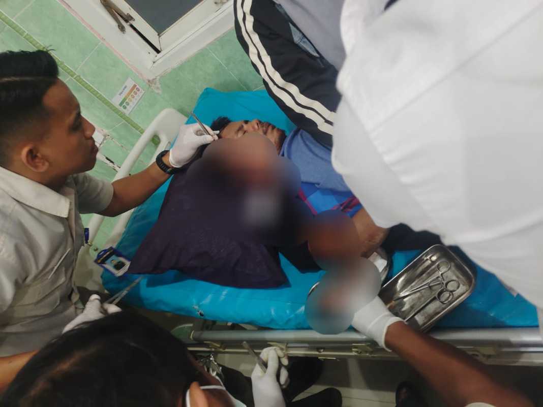 PERAWATAN MEDIS : Seorang pria menjadi korban pembacokan di lokasi tambang emas Poboya sedang mendapat perawatan medis.(Foto : IST)
