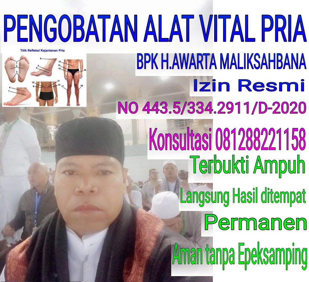 Kalau Anda memiliki masalah dengan kejantanan, jangan di biarkan saja. Segera lakukan pengobatan di klinik pengobatan khusus alat vital Bpk H.Awarta Malik Sahbana sekarang!