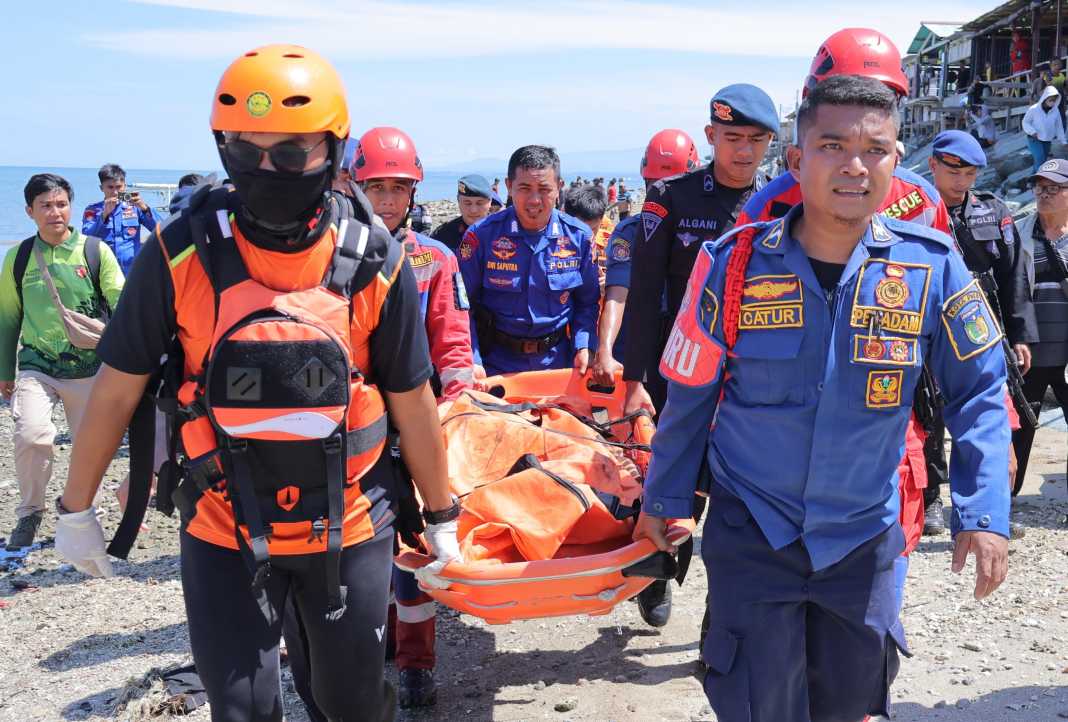 EVAKUASI : Tim SAR mengevakuasi korban digigit buaya di Pantai Talise, Kamis pagi (27/3/2025).(Foto : Basarnas Palu)